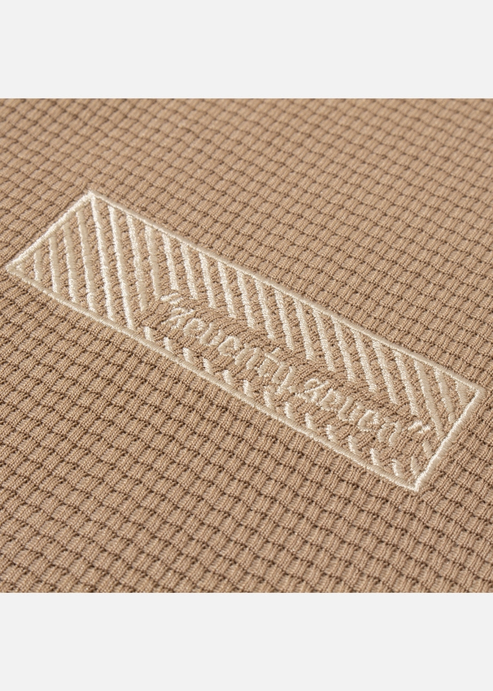 Đây là một chất liệu vải khá đặc biệt so với những chất liệu khác vì cấu trúc gồ ghề và mô hình bề mặt giống như chiếc bánh waffle. Được dệt kim với sự sắp xếp theo trật tự của sợi, tạo ra những ô vuông hoặc ô vanh nhỏ trên bề mặt. Cấu trúc này tạo ra các khe hở nhẹ và không đồng đều, giúp vải có khả năng thấm hút mồ hôi và thoáng khí tốt.