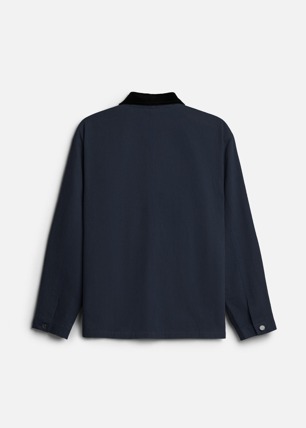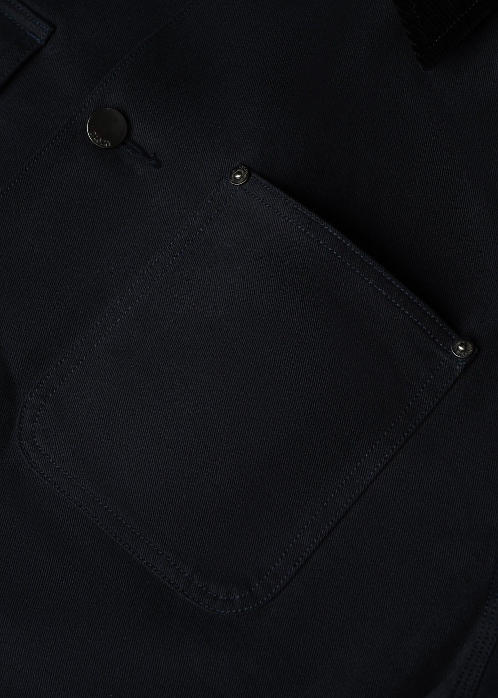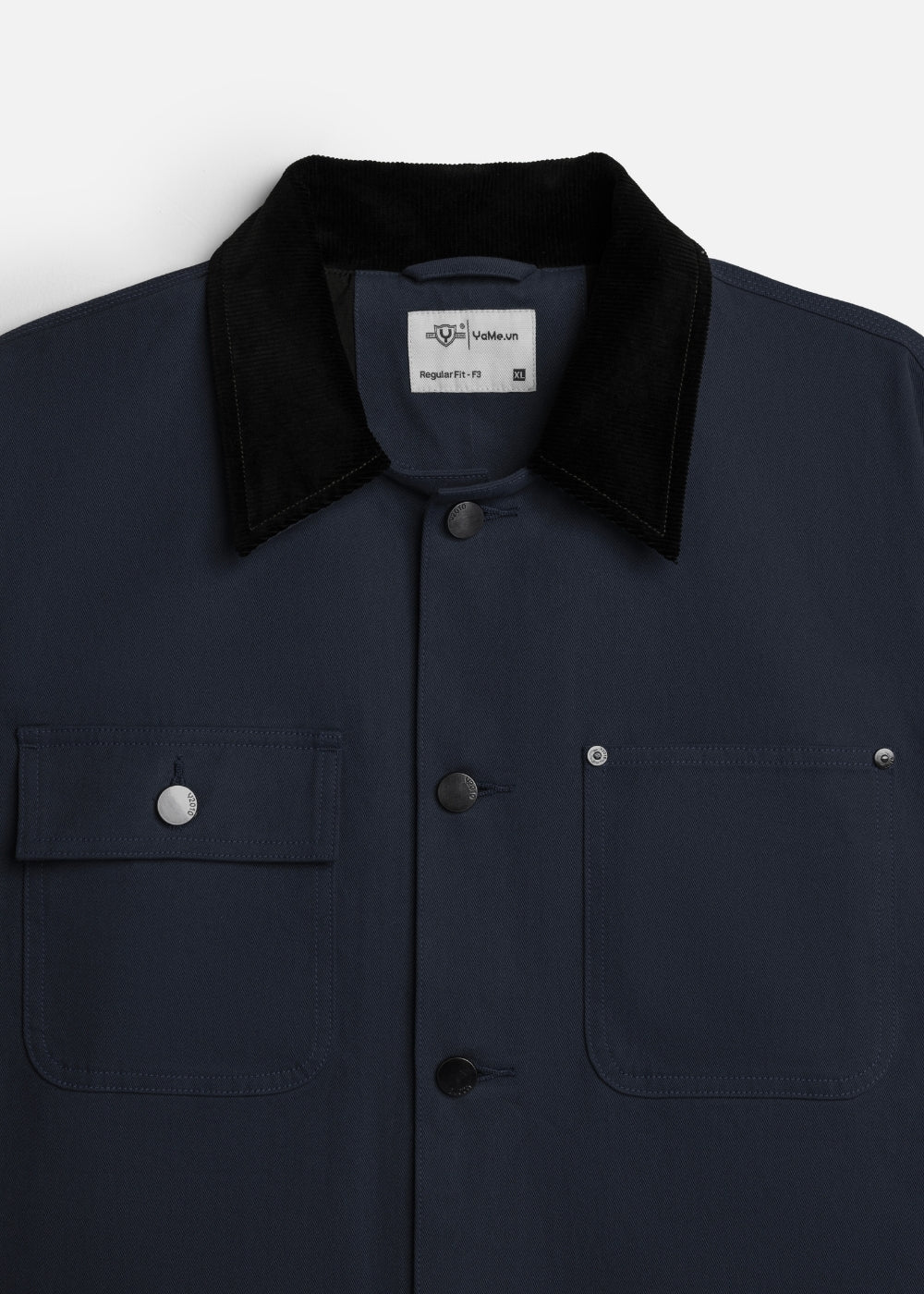 - Điểm nhấn cổ áo: Cổ bẻ phối chất liệu nhung tăm (corduroy) tương phản, mang lại vẻ đẹp cổ điển và sang trọng.