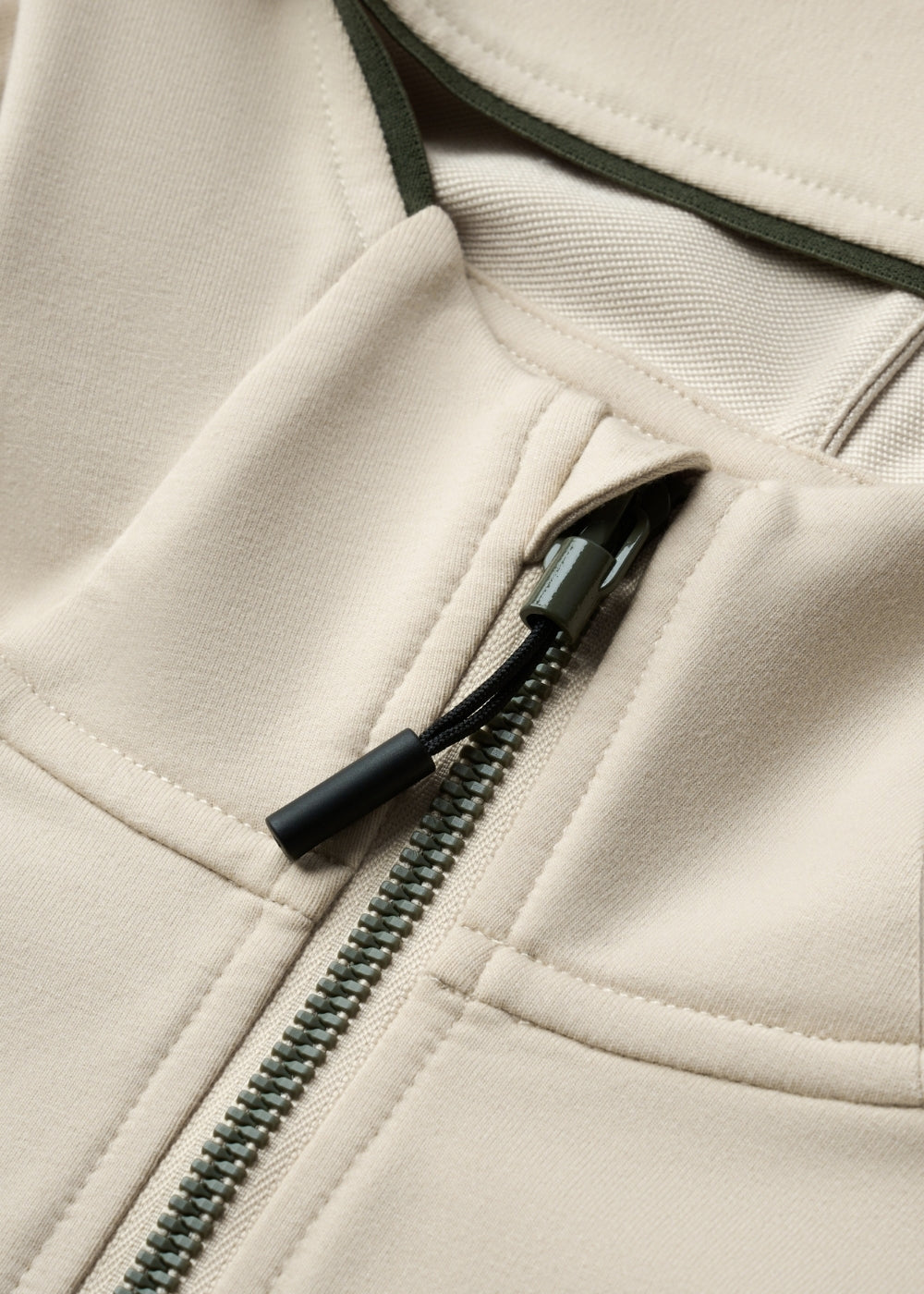 - Chống biến dạng: Sử dụng lớp keo lụa định hình ẩn bên trong nắp túi và vành nón, giúp áo luôn phẳng phiu, không bị dộp hay mất form sau nhiều lần giặt.