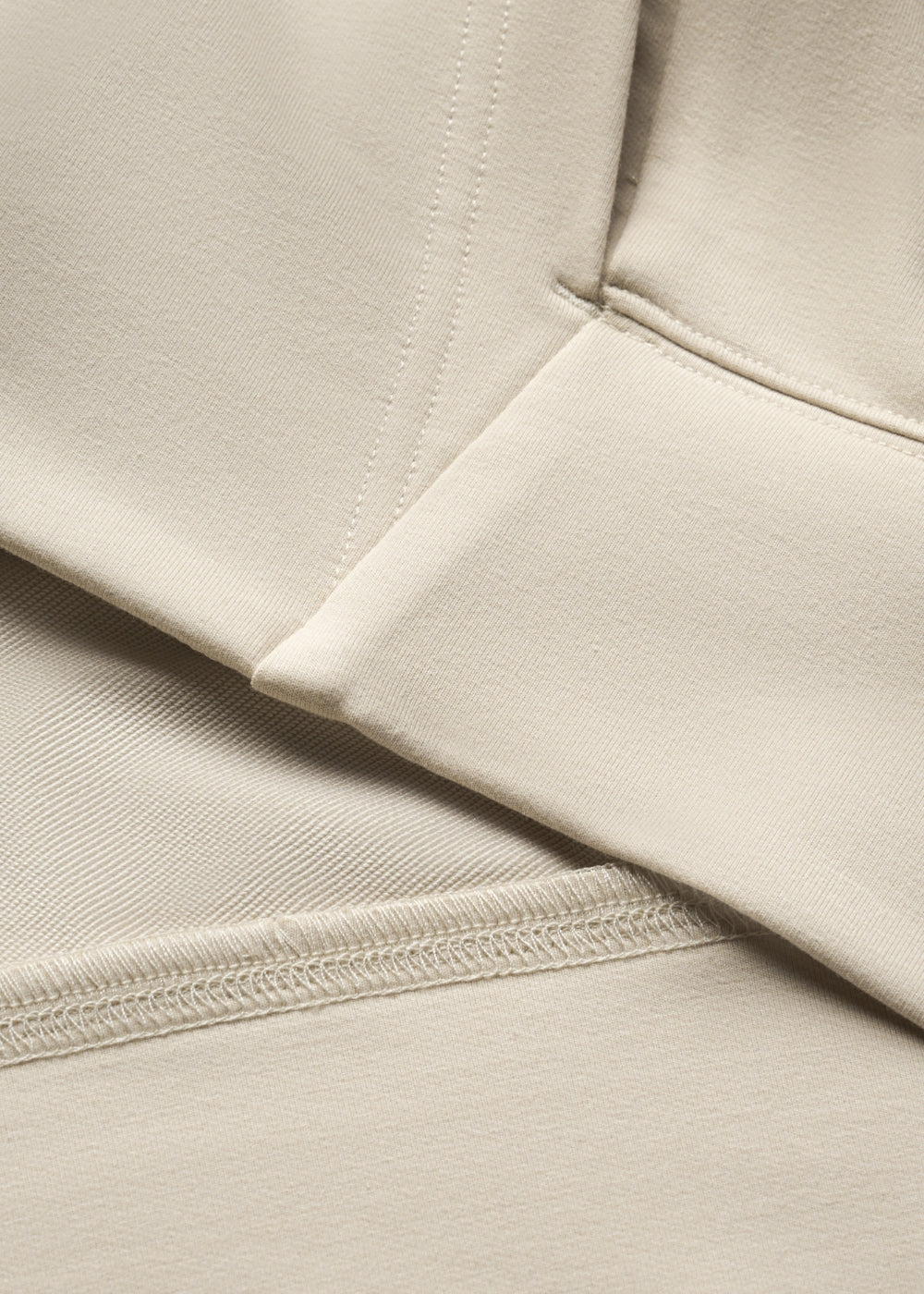 Không nhé. Đây là vải Terry (Vảy cá), không phải nỉ bông cào. Mặt trong là các vòng sợi dệt chéo. Ưu điểm của loại này là thoáng hơn nỉ bông gấp đôi, không để lại xơ vải dính lên áo thun mặc bên trong.