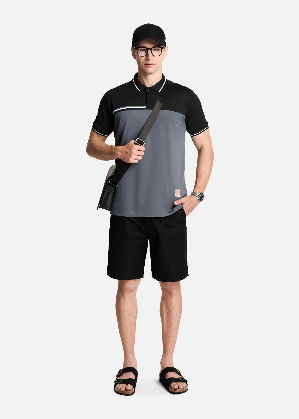 Áo Polo Phối Màu Pique Thoáng Mát Seventy Seven 019 Đen Xám