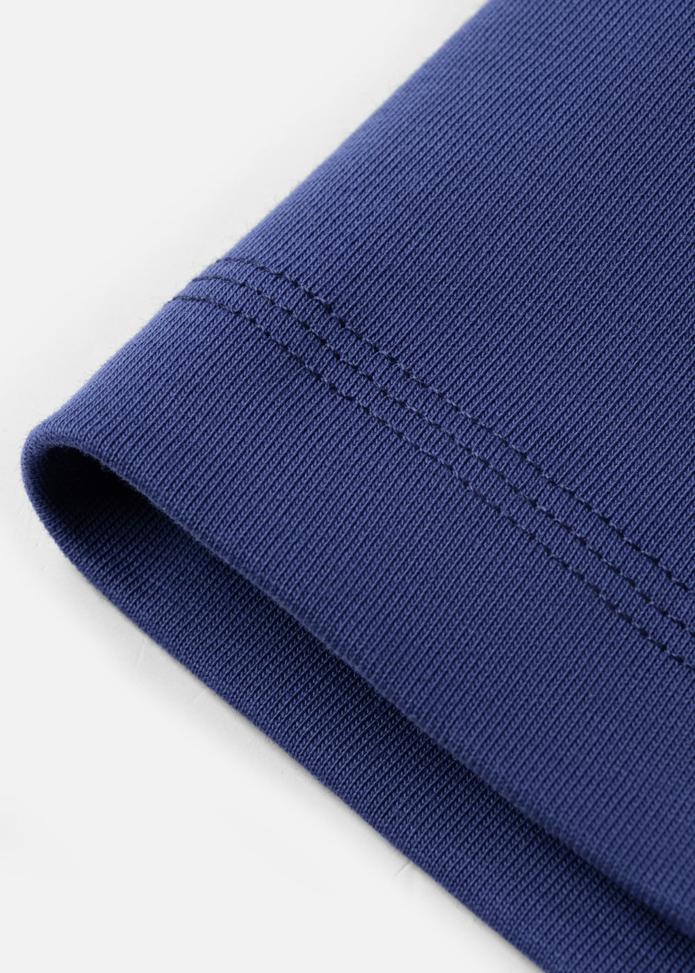 Không hề thô nha! Kỹ thuật may 3 kim chỉ áp dụng cho lai áo tay và vai, để tăng độ bền bỉ và chống bung chỉ. Phần thân áo vẫn mềm mại, và đường may rất tinh tế, không bị cộm đâu.
