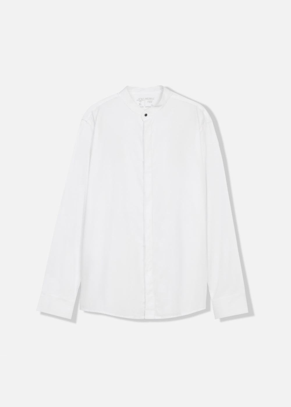 Áo Sơ Mi Cổ Trụ Tay Dài Vải Bamboo Ít Nhăn WRINKLE FREE 06 Trắng