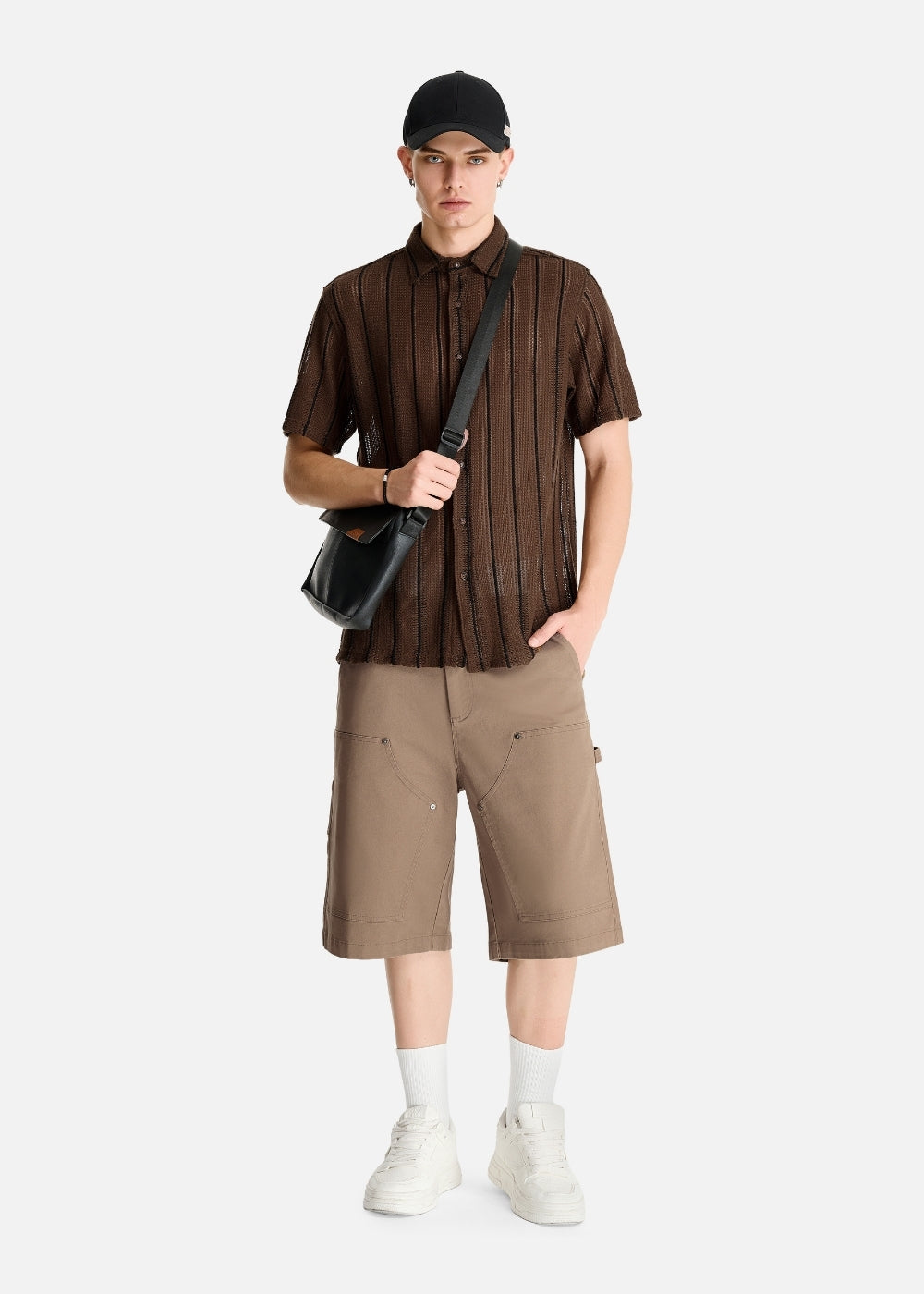 Áo Sơ Mi Lưới Họa Tiết Sọc Thoáng Mát The No Style 144 Nâu Đậm
