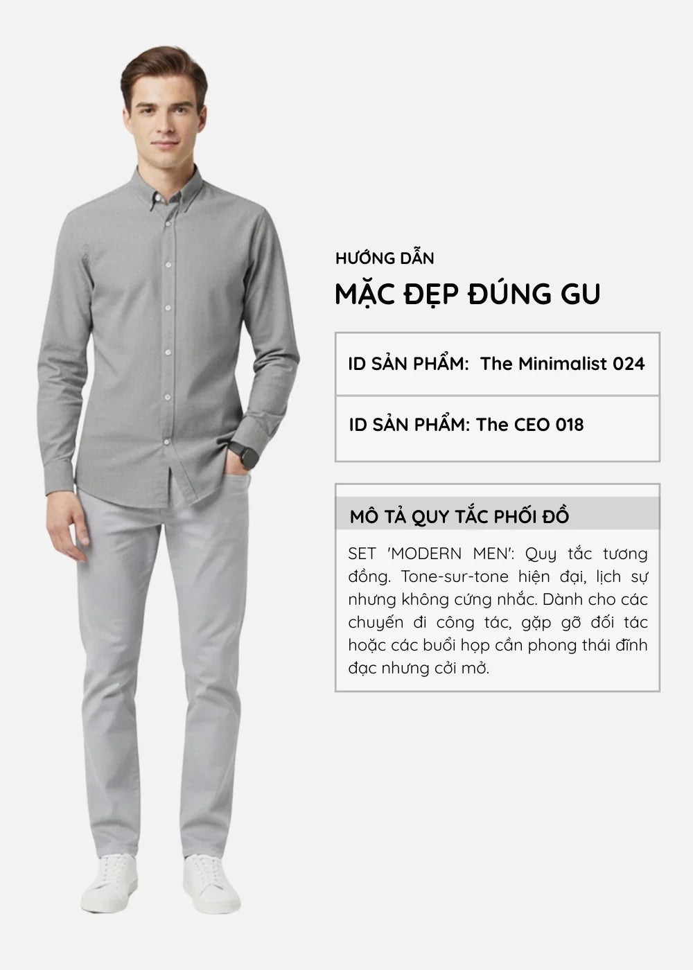 The Minimalist 024 là giải pháp sơ mi công sở chuyên dụng, ưu tiên sự chỉn chu tuyệt đối với khả năng kháng bẩn linh hoạt, giữ phom ổn định và độ bền kết cấu cao cho người dùng bận rộn.