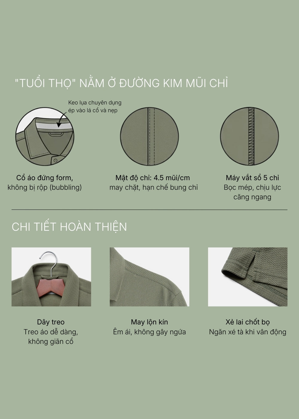 KẾT CẤU BỀN BỈ: Sườn áo may 5 chỉ chịu lực xẻ lai gia cố đánh bọ có dây treo cổ áo tinh tế