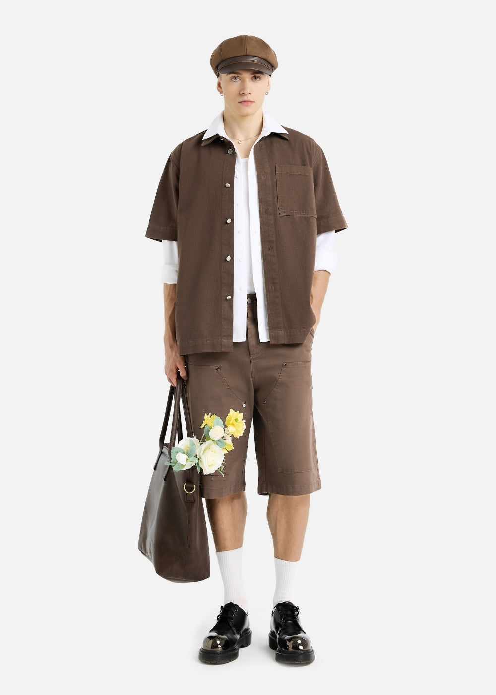 Áo Sơ Mi Tay Ngắn DurableTex™ Bền Bỉ Boxy Shape Multi Color Jean 003 Nâu Đậm