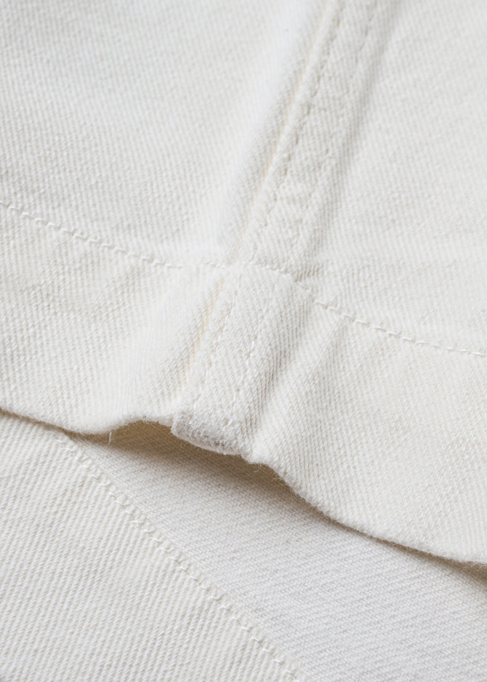 - Chỉ Cotton 20/3: Sử dụng chỉ se 3 sợi tiết diện lớn thay vì chỉ mảnh thông thường, giúp chịu lực căng của vải dày và tạo hiệu ứng đường may nổi khối (high-low) đẹp mắt.