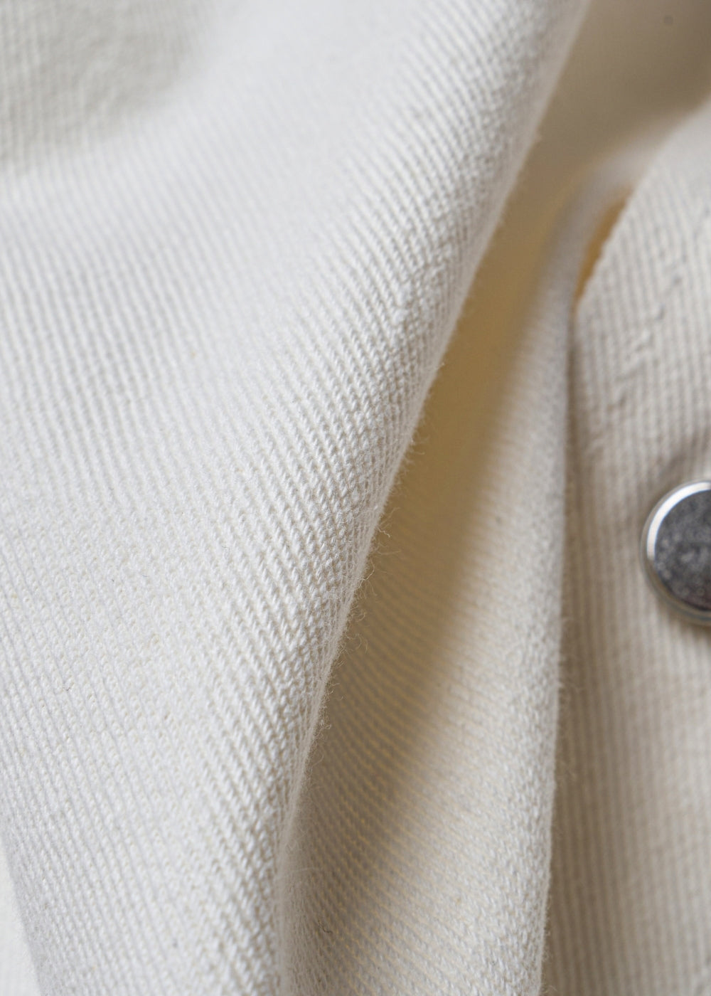- Vải DurableTex™ 11.5oz: Dệt kiểu Twill (Vân chéo) từ 100% Cotton tự nhiên. Cấu trúc này mang lại độ dày dặn, đứng phom (Shape Retention) nhưng vẫn đảm bảo độ thoáng khí, không gây hầm bí.