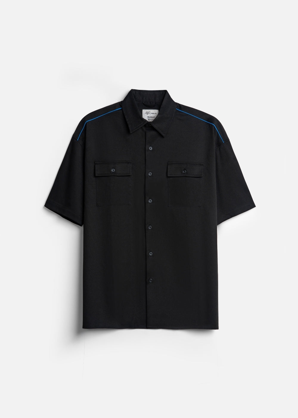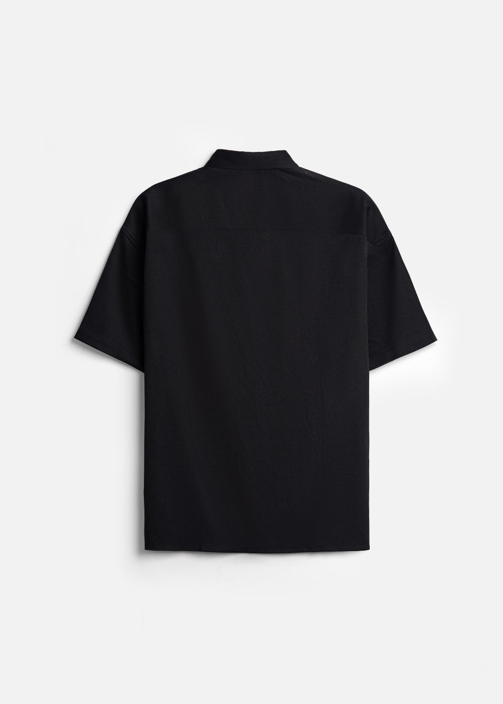 Áo sơ mi tay ngắn kiểu dáng rộng, vải nhẹ, nhăn nheo, viền gân trên vai.