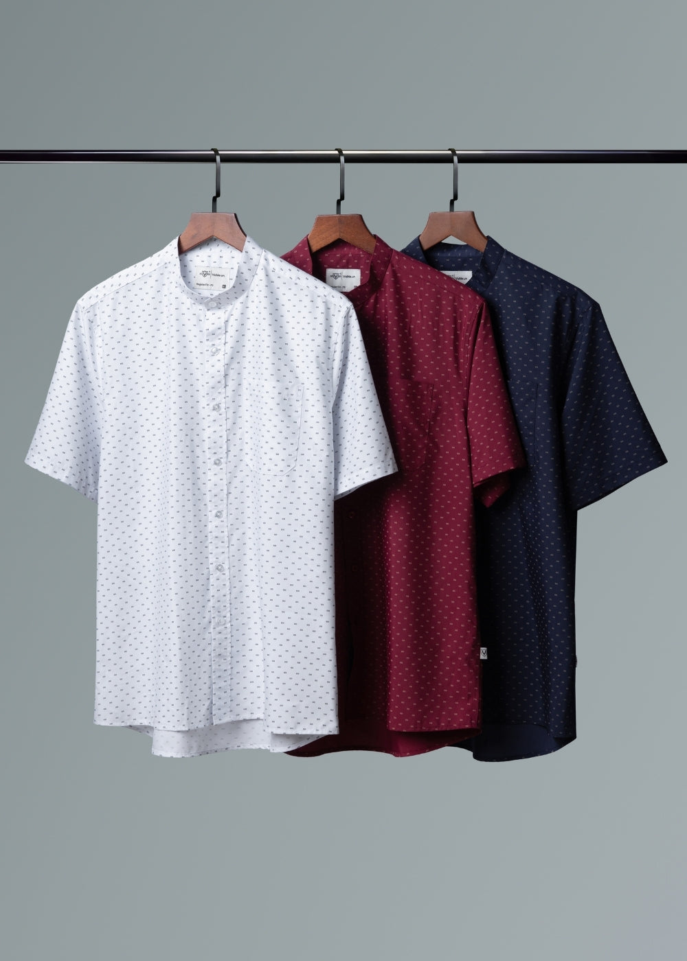 Áo sơ mi tay ngắn Regular fit, vải siêu mịn, ít nhăn, Công nghệ Pigment Printing.