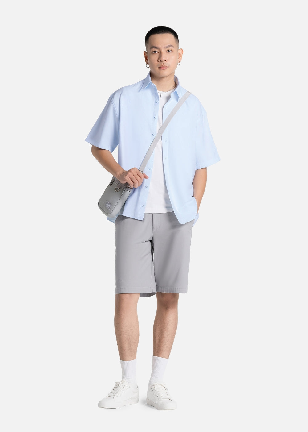 Áo sơ mi tay ngắn kiểu dáng rộng rãi, màu sắc bền chắc, giữ form, thoáng mát.