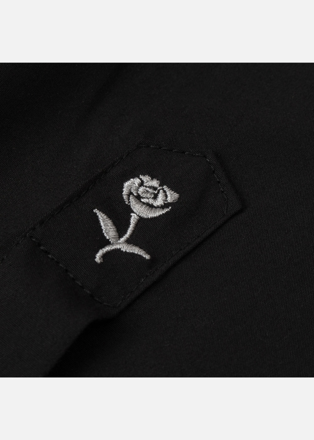 4. Kỹ thuật: Đột chỉ vị trí viền cổ giúp cổ áo trở nên gọn gàng, chắc chắn. Nút áo được thiết kế đặc biệt là một điểm nhấn tinh tế cho chiếc áo. Icon hoa hồng được thêu 2D tỉ mỉ như một kí hiệu nhận biết cho loại vải đặc biệt này. Xếp ly đô sau tăng độ thoải mái cho phần lưng khi hoạt động