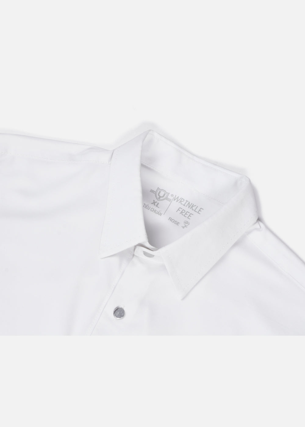 Áo Sơ Mi Trơn Tay Dài Vải Hoa Hồng Kháng Khuẩn WRINKLE FREE 11 Trắng