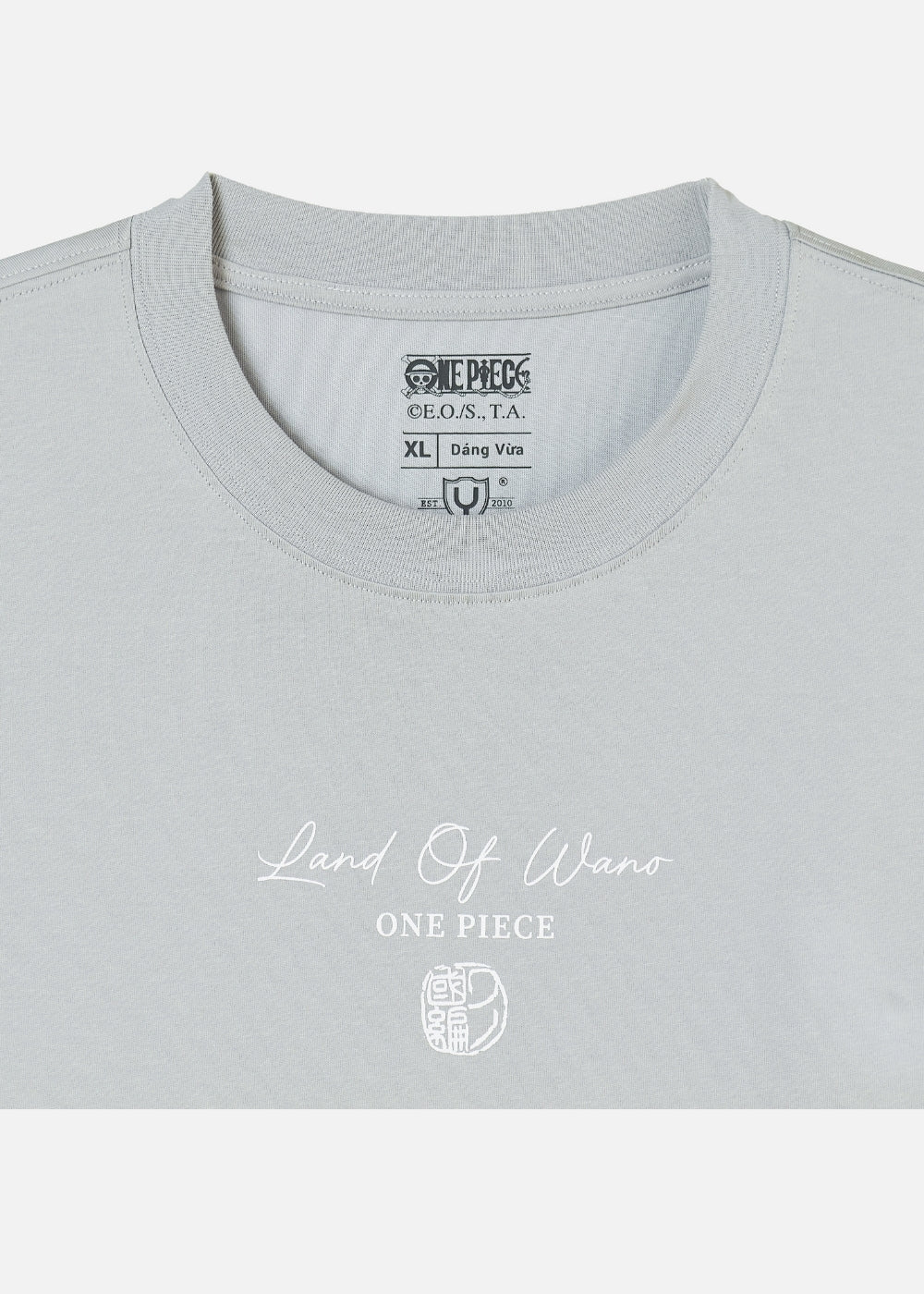 4. Kỹ thuật: Bo cổ áo được may tỉ mỉ, đồng màu với vải, tạo vẻ ngoài chỉn chu và tinh tế. Họa tiết Seigaiha, tượng trưng cho những con sóng bất tận, được in bằng kỹ thuật Water base tiên tiến, Seigaiha gửi gắm ý nghĩa về sức mạnh, may mắn và sự trường tồn, đậm nét văn hóa truyền thống. Các dấu ấn One Piece in bằng kỹ thuật Rubber print, sắc nét và bền màu.