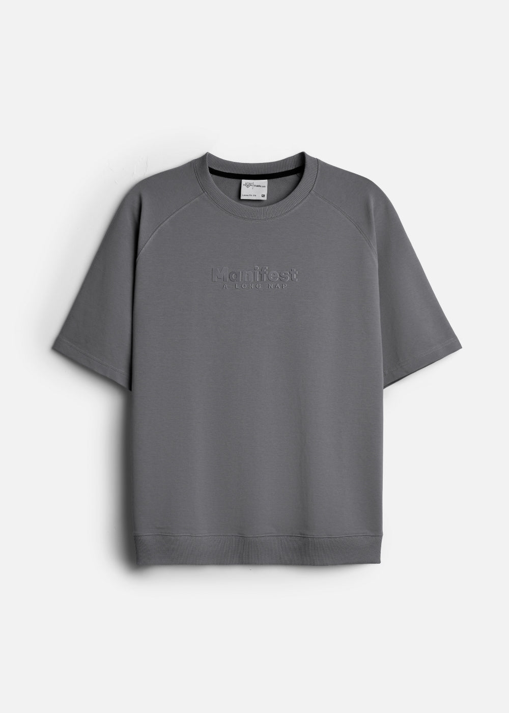 Áo Thun Boxy Raglan Hack Dáng CloudTouch™ In Nổi 3D The No Style 204 Xám Đậm
