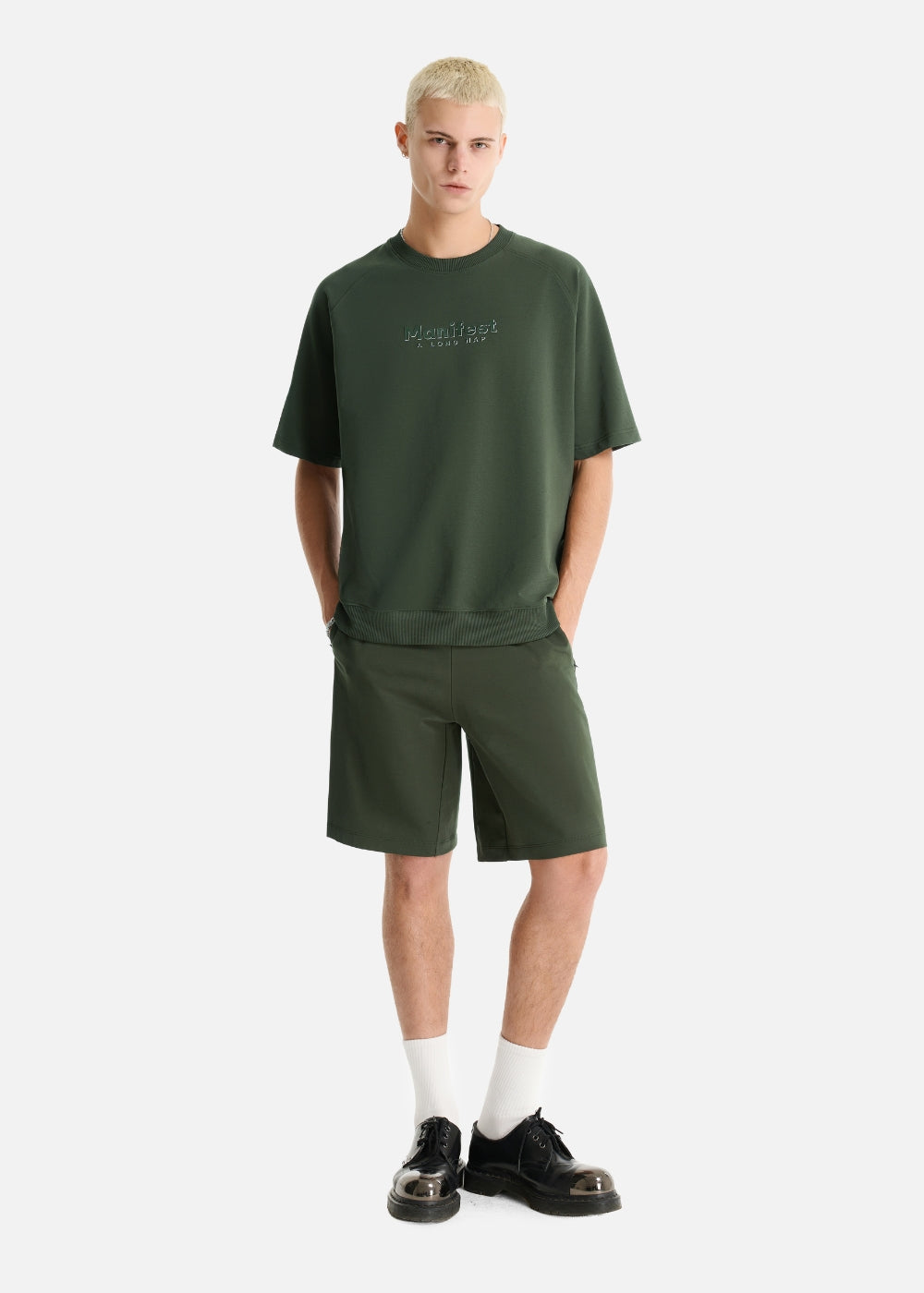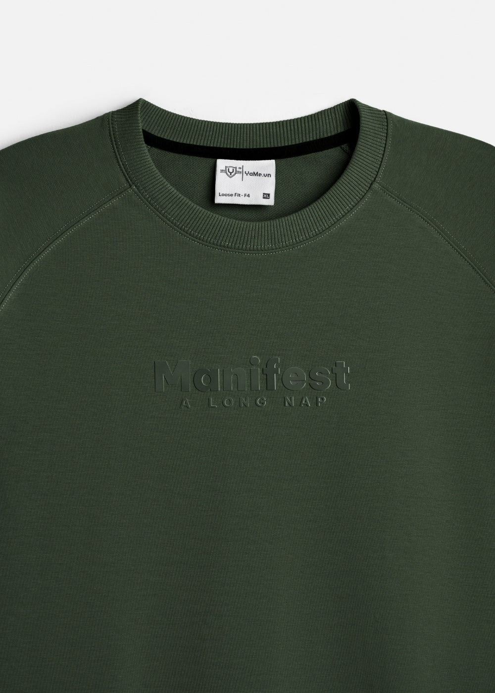 Áo Thun Boxy Raglan Hack Dáng CloudTouch™ In Nổi 3D The No Style 204 Xanh Lá Đậm