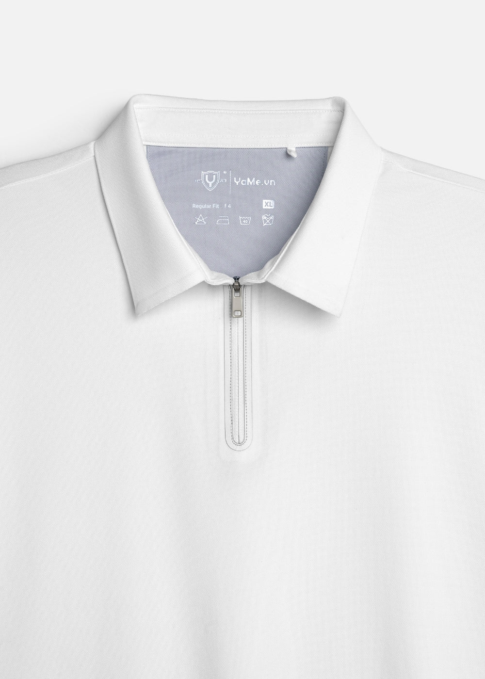 Bạn yên tâm, bề mặt vải dệt kiểu Aero-Pique (mắt lưới cá sấu) tạo độ xốp và thoáng khí tự nhiên. Đặc biệt, vùng cổ được may theo kỹ thuật Clean Neck Setting (tra cổ dây viền) nên rất êm, không gây cộm ngứa ở gáy.