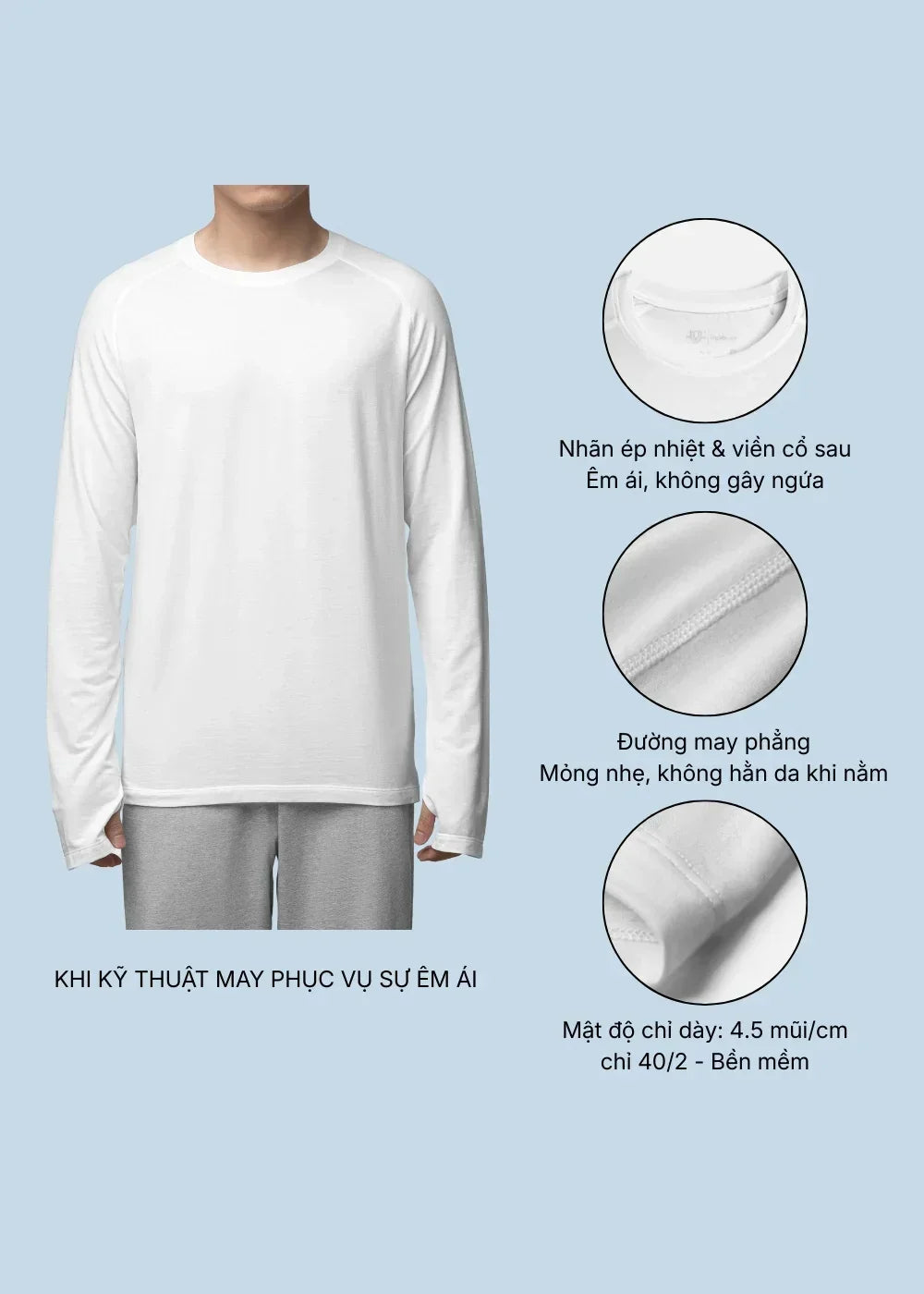 LOẠI BỎ SỰ KHÓ CHỊU: Đường may phẳng mỏng kết hợp nhãn ép nhiệt giúp loại bỏ hoàn toàn cảm giác dặm ngứa
