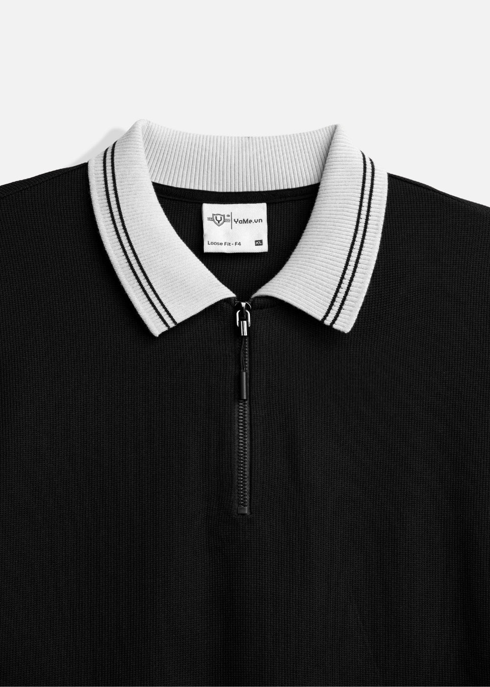 Form rộng và cổ zipper giúp tổng thể trẻ trung, đậm chất retro hơn. Ngoài ra, vải waffle tạo texture lạ mắt và cao cấp hơn so với polo vải trơn.