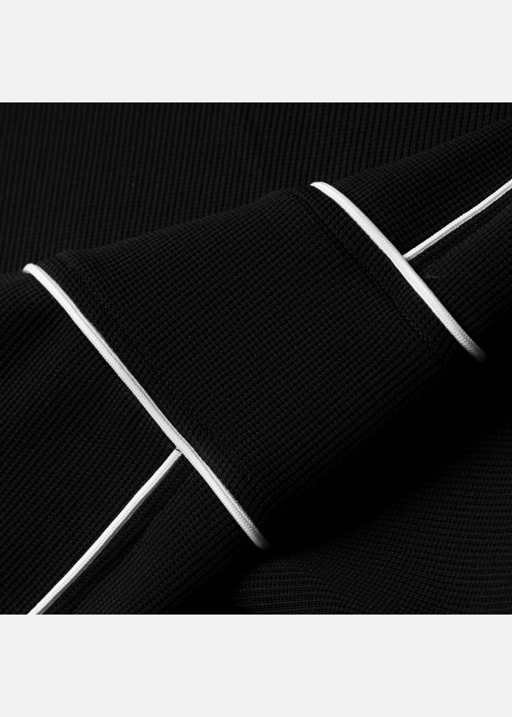 Áo thun tay dài Loose fit, cổ khóa kéo, vải Cotna đàn hồi thoáng mát.
