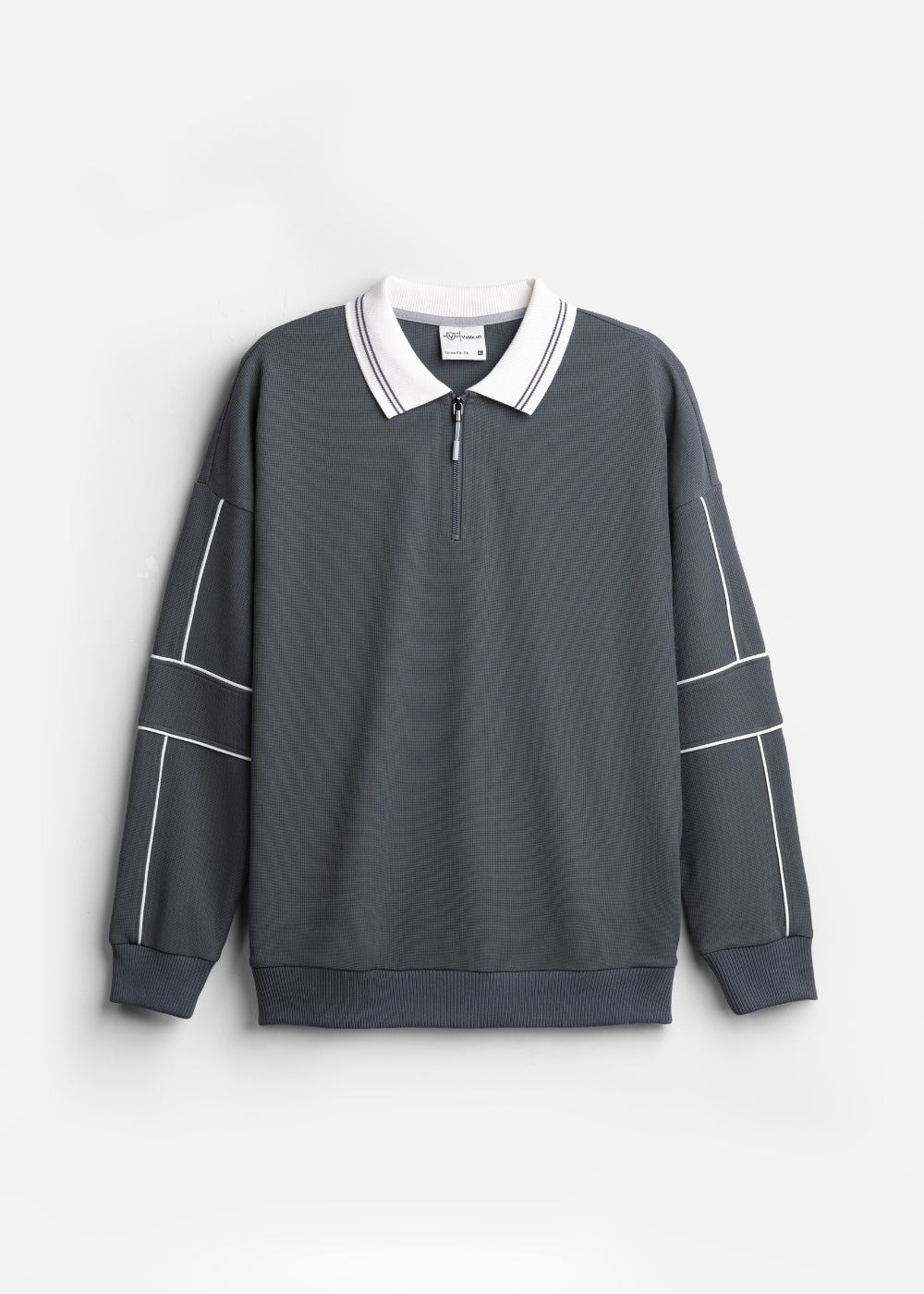 Áo thun tay dài Loose fit, cổ khóa kéo, vải Cotna đàn hồi thoáng mát.