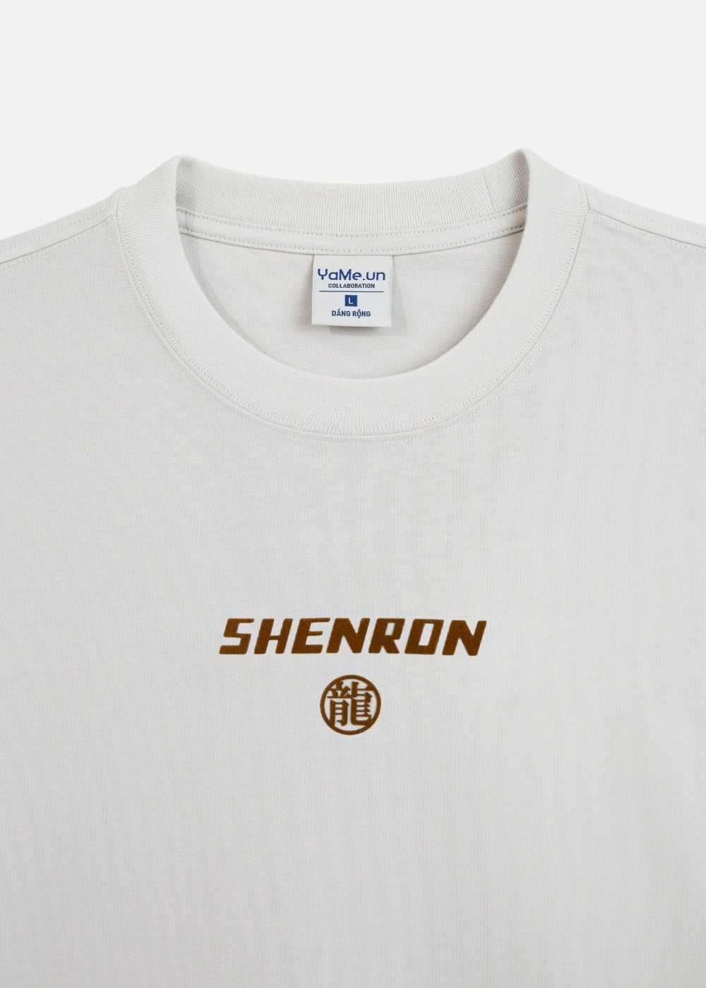 Cổ tròn basic với bo cổ đồng màu tạo nên vẻ ngoài thanh lịch. Hình ảnh Shenron được ép nhung cao cấp nổi bật trên nền áo, cùng với họa tiết rồng in ẩn mặt sau được in bằng công nghệ tiên tiến, đảm bảo màu sắc tươi tắn, không bị phai màu theo thời gian.