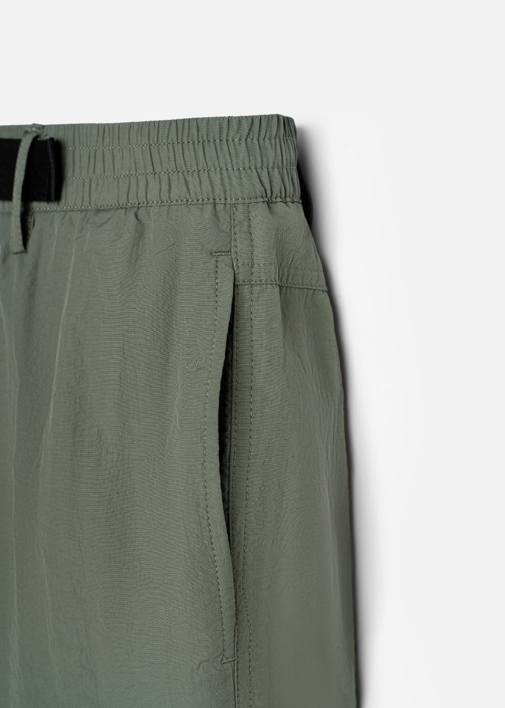 Quần short dù Loose Fit, vải nylon siêu nhẹ trượt nước, khóa gài tăng giảm.