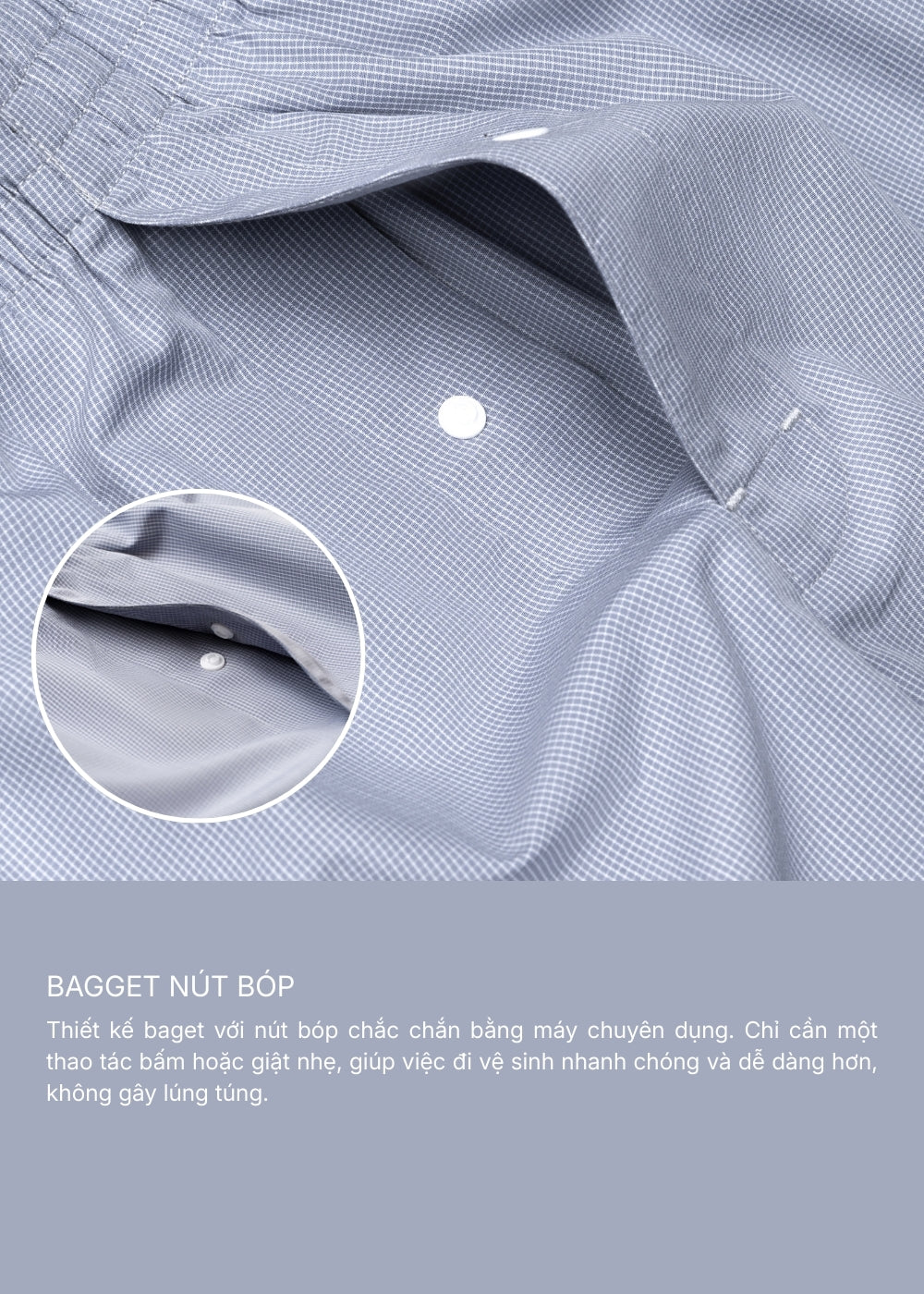 - Chi tiết sản phẩm: Không đường may sau, Đáy chữ U, Baget cài nút.