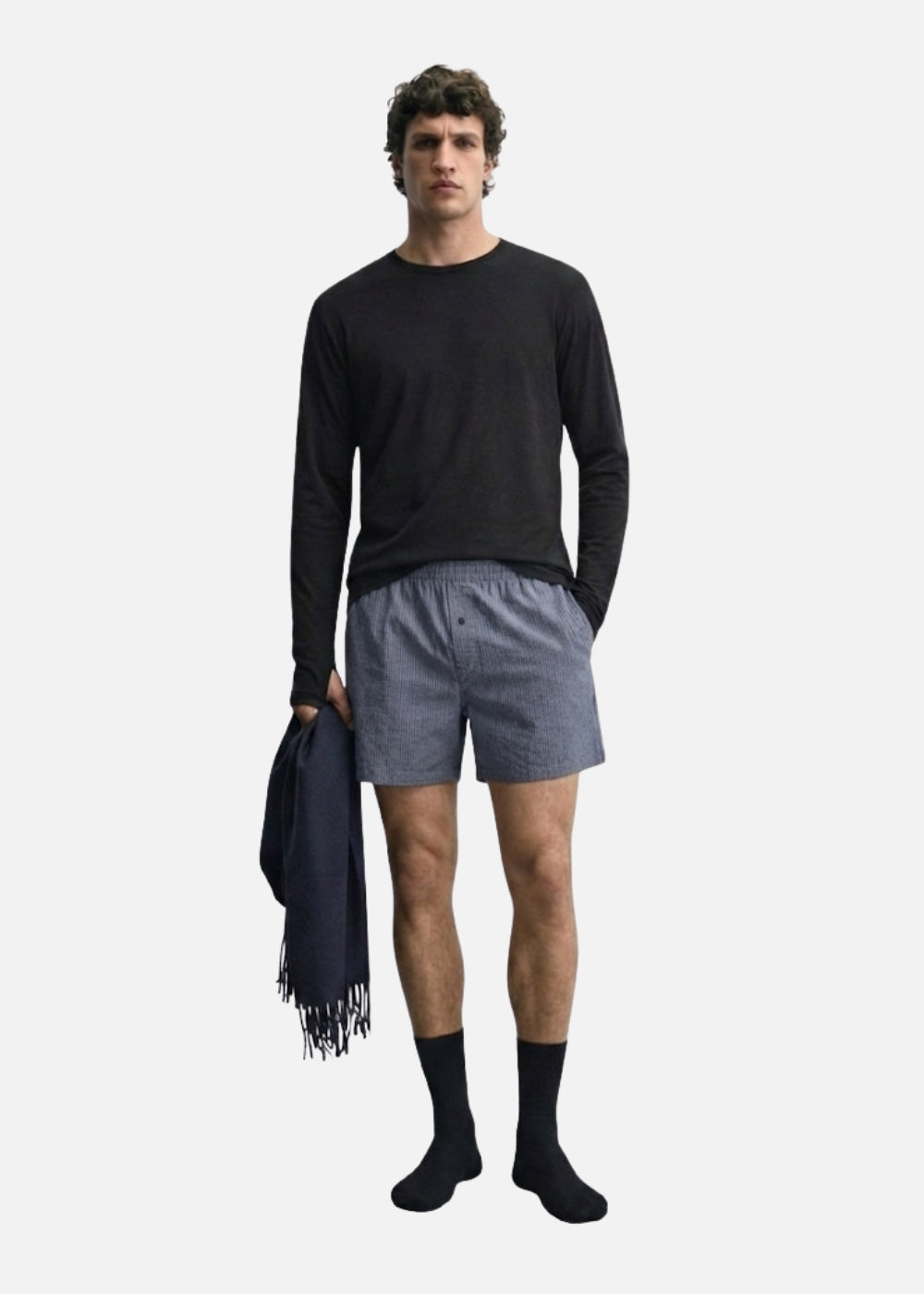 Đây là vải Yarn-Dye (nhuộm sợi trước khi dệt) nên màu cực bền, ăn sâu vào lõi sợi chứ không phải in lên bề mặt. Bạn cứ giặt thoải mái theo hướng dẫn, màu vẫn sắc nét rất lâu.